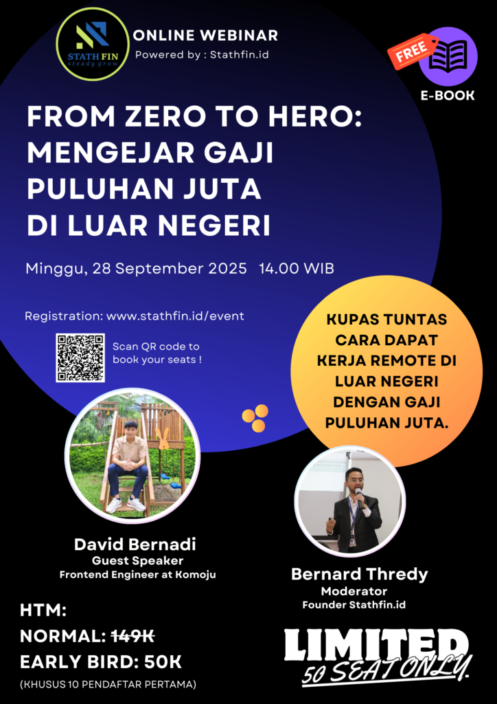 Gabung di webinar “From Zero to Hero: Mengejar Gaji Puluhan Juta di Luar Negeri” yang akan diadakan pada: 28 September 2025.